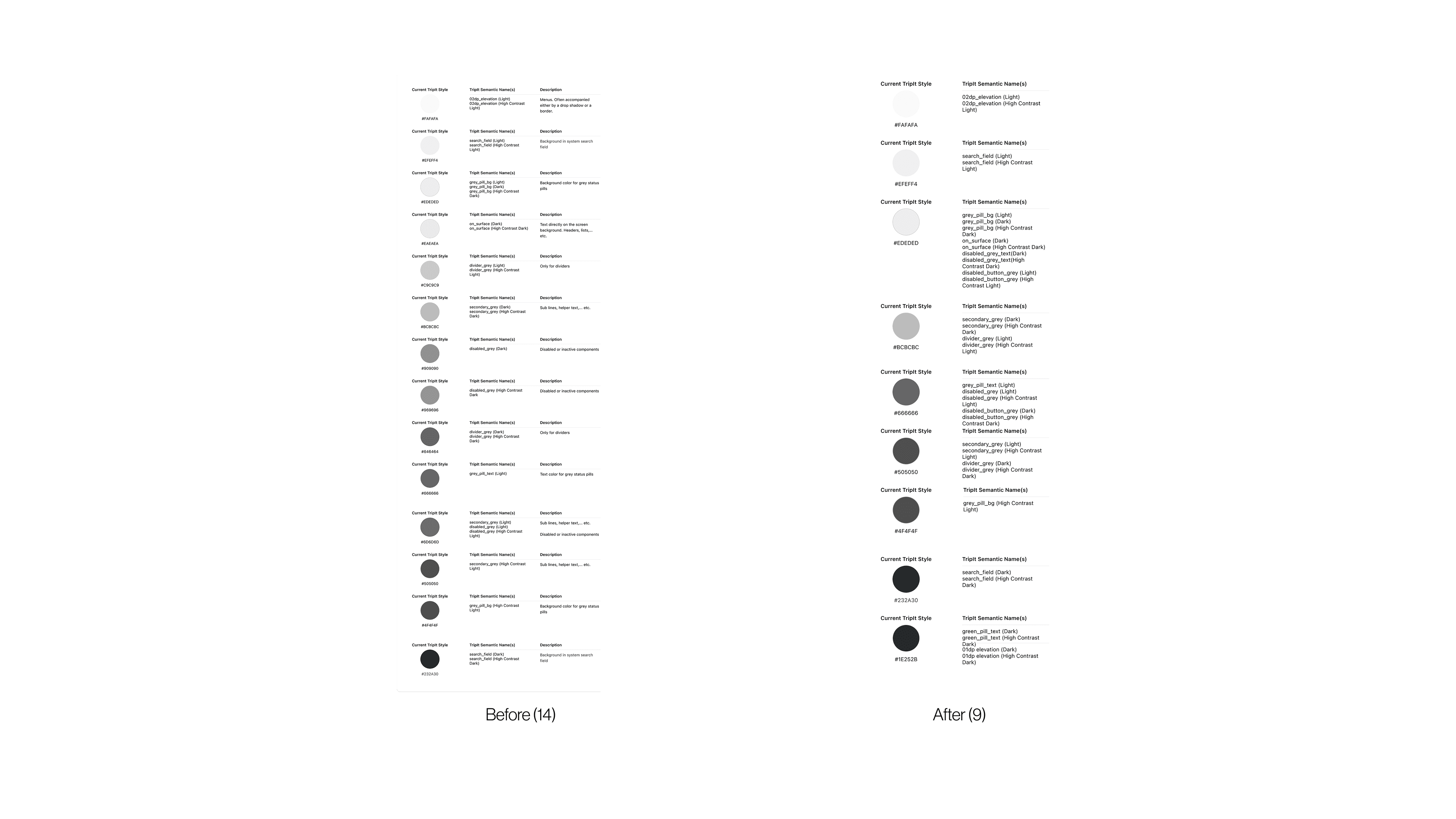 The old system had a plethora of colours that shared similar hex value or functionality, which was highly unnecessary and only leading to more confusion.